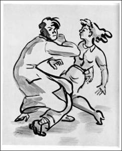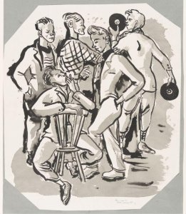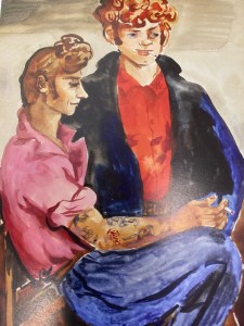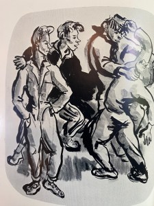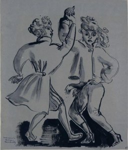 Margareta Berger-Hamerschlag was born in Vienna in 1902 to wealthy Jewish parents. From an early age, she attended children’s art classes taught by Franz Cizek (who influenced her later work in the youth clubs, and is cited in her book). In her teens, she went on to art school. She seems to have been an independent, progressive and cosmopolitan young woman. As an artist, she worked in a range of media, including woodcuts, oil and watercolour, as well as designing costumes and illustrating books and magazines. She had some success, participating in group exhibitions, but in 1936 she and her husband relocated to London, largely (it would seem) in response to the rise of Nazism. Her work is figurative rather than abstract, and is influenced by the ‘New Objectivity’ of the time (Otto Dix, George Grosz et al.). It’s probably at its most effective when picturing people, not least in her images of the youth clubs. (I’ve lifted a few of these here, but further examples of her work can be found on this website hosted by her son, and in the Victoria and Albert Museum collection here.)