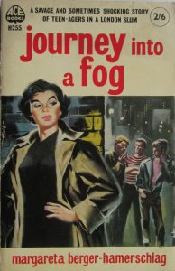 Journey into a Fog appeared at an interesting point of transition in the cultural history of post-war Britain, which I’ve written about several times before. The youth clubs Berger-Hamerschlag describes (which are set in ‘grim’, prison-like Victorian school buildings) are remarkably similar to the East London school in E.R. Braithwaite’s To Sir With Love (1959); and, even though she doesn’t use the term, the young people themselves are related to the ‘teddy-boys’ (and girls) who appear in Richard Hoggart’s The Uses of Literacy (1958) and Colin MacInnes’s Absolute Beginners (1959). This was also the period of Karel Reisz’s documentary The Lambeth Boys, and Relph and Dearden’s film Violent Playground.
