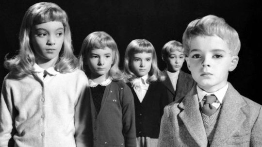 The action begins when all the inhabitants of the small English village of Midwich suddenly fall unconscious. When they come round several hours later, they seem unaffected, but gradually all women of child-bearing age in the village are discovered to be pregnant. They all give birth on the same day; and their children share an unusual appearance, including glowing golden eyes, pale skin and platinum blond hair. The children develop unnaturally quickly, and they can communicate telepathically with each other: as one learns something, so do the others. Eventually, they abandon the homes of their adoptive parents for a school run by the Ministry of Defence, where they are taught by a local man, Professor Gordon Zellaby. For the most part, the children remain silent about their motivations. However, there is a series of increasingly violent encounters with the villagers, in which the children telepathically force their attackers to turn their weapons on themselves. Meanwhile, Zellaby learns from the Ministry about the existence of other villages with similar groups of children. While most have died, the Soviet Union has destroyed its own brood when it became apparent that the children’s powers were too much for it to control. Ultimately, Zellaby decides he must do the same: he hides a bomb in his projection equipment, and detonates it while showing the children an educational film, killing himself and all of the children.