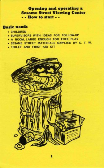 Once the series went on air, these promotional activities were ratcheted up.[iii] Local offices were set up in five cities, and this was extended to fifteen for the second season. Community-based viewing centres were established, particularly for those who might not have easy access to the broadcasts at home, and for children who were not in day care: initially run by volunteers (some from the neighbourhood youth corps), they met in libraries, public housing projects, churches, storefront premises, hospitals and health care facilities, and even in prisons. Mobile viewing centers were sent into some inner-city neighbourhoods, and people were encouraged to donate any surplus television sets. The viewing centres in turn distributed information leaflets to parents’ groups and Head Start centres. In some instances, home viewing centres were established for people who were reluctant to attend a more formal neighbourhood meeting; while ‘Sesame Mothers’ programmes in Los Angeles and Chicago trained mothers to run viewing groups. There were live appearances of cast members, exhibitions and posters, training workshops and films, and a range of published materials, including a monthly ‘parent/teacher guide’.
