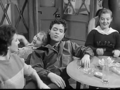 The central character here is actually the talent agent (Johnny, played by Laurence Harvey): like Glenda in Loving You, we see him determinedly building the buzz of media interest, not least through television. ‘Bongo’ gradually becomes uncomfortable with the way he is being manipulated: like Deke in Loving You, he complains that he is just something Johnny sells, ‘like rat poison or fish and chips’. In many respects, the film is a good example of the ‘imperial’ teen musical: like The Girl Can’t Help It, it largely takes an adult point of view. Johnny and the other adults make the running, while Bongo is merely the innocent victim. By comparison with Loving You, however, it gives much less status and credence to the young performer’s music.