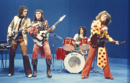 My instinctive responses to all this are certainly contentious, and I’ll leave the finer points to enthusiasts. However, they do imply that defining glam isn’t straightforward. Whatever else it may have been, glam was not primarily a musical genre. In terms of their music, all the acts featured in the BBC4 compilation could reasonably be described as ‘pop’ (rather than ‘rock’, I would argue). Most of the tunes follow the familiar chorus/verse structure of three-minute pop songs; there is an emphatic, thumping 4/4 backbeat; melodic hooks appear early, and are repeated many times; there are very few instrumental solos, and little elaborate ornamentation; and the lead vocal performances often feature affected Cockney accents, accompanied by high-pitched backing singers. Even so, there isn’t much in common between (for example) the quirky experimentalism of Roxy Music or Sparks on the one hand and the more mainstream, stomping pop of Slade or The Sweet on the other – especially if we look beyond the singles featured on Top of the Pops and sample their albums. Likewise, it’s hard to find much musical common ground between the 50s and 60s revivalism of Mud and Alvin Stardust and the increasingly symphonic stadium rock of Queen; or the grand melodrama of Bowie’s Ziggy Stardust period and the basic rock-n-roll of Suzi Quatro.