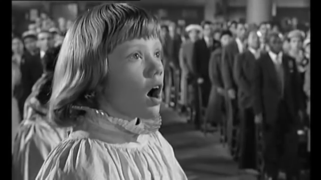 Tiger Bay also comments more directly on assumptions about childhood, most notably in the scene where Gillie takes the gun with her to church and conceals it under her surplice. She then proceeds to sing in a very pure and ‘angelic’ way; yet she also swaps a bullet from the gun for some chocolate with one of the choir boys, and they clinch the deal while singing in time to the psalm. As in her interrogations at the hands of the police, it seems that Gillie is very skilful in turning on the persona of the innocent, wide-eyed child when the context suits her.