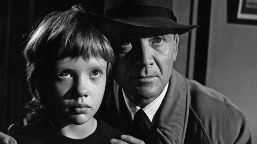 One recurring issue in the films I’ll be discussing is to do with children’s agency – that is, their ability to drive and influence events. A key aspect of this is to do with knowledge. This is partly a matter of how the film manipulates the viewer’s access to information, and that of the various characters, through narrative; but in this case it is also to do with the different kinds and levels of knowledge possessed by the children and the adults. In the early part of the film, Gillie has most of the knowledge, and the viewer shares it with her: she knows where the gun is, and conceals it; she knows that the gun is not loaded, although Kochinsky does not know this when she aims it at him; and of course she constantly conceals key facts about the murder from the police. At the same time, the viewer knows that Kochinsky is unlikely to take her with him, despite her wishes; and we see several threats to her safety that she does not see herself (notably in a scene where a gate swings open on a ferry, and Kochinsky eventually rescues her).