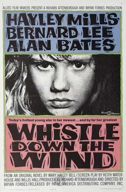 This bond that is formed between the child and the criminal is one that recurs, in a rather different way, in the second film I’ll discuss, Whistle Down the Wind. Released in 1961, it was produced by Allied Film Makers, a small independent company that made a total of six films (including, most famously, the gay drama Victim) between 1959 and 1964. Two members of the company were mainly involved: Richard Attenborough as producer, and Bryan Forbes in his debut as a director. The script, based on a novel by Hayley Mills’s mother Mary Hayley Bell, was written by Keith Waterhouse and Willis Hall, who went on to become leading television writers.