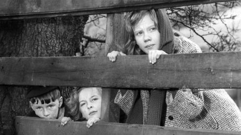 From the outset, the film portrays the children’s world as largely separate from that of adults. In the opening scene, the three children, unseen, follow a farm worker as he goes to drown some unwanted kittens. They promptly rescue them and hide them in the barn. Here, as in their later attempts to conceal Blakey, they effectively evade adult control and surveillance, often through outright lying and deceit – and despite adults’ repeated attempts to boss them about. As Kathy says, the return of ‘Jesus’ has to be kept hidden: ‘it’s got to be a secret society from the grown-ups’. To some extent, the children are free to come and go as they please, although Kathy (aged about twelve) is delegated to take charge of the younger ones. The film offers a vision of rural childhood, but it is by no means a pastoral idyll of the kind that appears in Mills’s Disney films: the landscape is rugged, the weather is unforgiving, and farming is clearly very hard work.