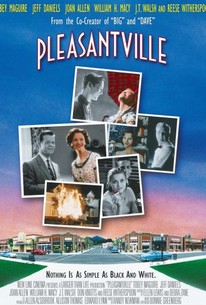 The two leading characters, twins David (Tobey Maguire) and Jennifer (Reese Witherspoon) are magically taken back to the world of Pleasantville, a black-and-white 1950s sitcom shown on a ‘retro’ TV channel – a show of which David is a particularly knowledgeable fan. After a quarrel over the remote control and a visit from a mysterious repairman, they are transported into their TV set, and find themselves in the living room of the idyllic Pleasantville family, the Parkers. David and Jennifer now have to act the roles of Bud and Mary Sue Parker, while retaining their modern-day attitudes and personalities. The socially awkward David is initially pleased to become the normal, popular Bud, and by his acquisition of a girlfriend; although Jennifer – whose interests mainly extend to sex and her peer group – is dismayed by the constraints of Pleasantville. Bud urges her not to disrupt the fictional world he knows so well, but eventually the twins begin exposing the inhabitants of the town, not just to sex, but also to other personal freedoms, and to art and literature. As they do so, Pleasantville starts to change, as previously black-and-white objects and people burst into rich and vibrant colours.